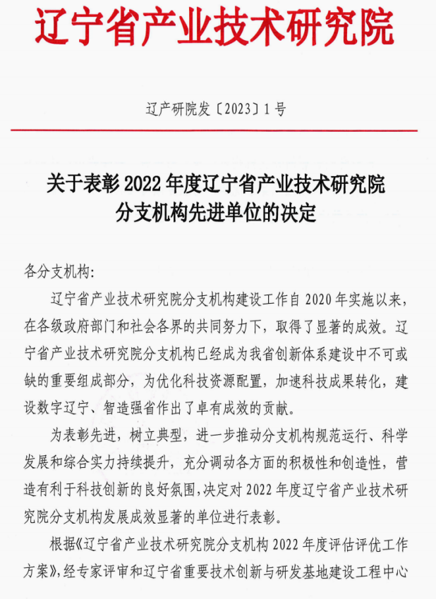 辽宁省产业技术研究院分支机构组建于2020年,旨在进一步优化我省科技资源配置,推动科技成果转化,建设数字辽宁、制造强省。本次为表彰先进、树立典型,调动各方面积极性与创造性、营造良好科技创新氛围,决定对智能建筑装备信息技术研究所等20家发展成效显著的2022年度辽宁省分支机构单位授予表彰。